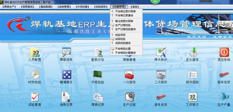 它集生产计划管理、人员信息管理、配轨、短轨管理、长轨编码管理、焊接管理、生产设备工艺数据采集、试验管理、质量管理、立体货场管理、成轨场管理、成轨装车发货管理等功能于一体,从而形成一套以长轨条码为主线,关联其生命周期信息,并同时兼容焊轨质量追溯体系的管理系统。操作简单、易用。